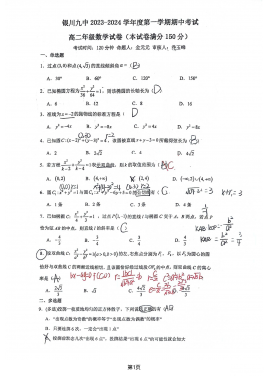 银川九中2023-2024学年度第一学期期中考试高二年级数学试卷请问【第8题、22题】如何解答