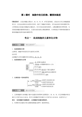 2024年高考生物一轮复习(新人教版) 第1单元 第2课时 细胞中的无机物、糖类和脂质