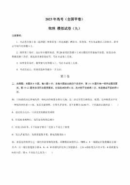 2023年高考物理(全国甲卷)模拟试卷09(PDF版 学生版+解析版)