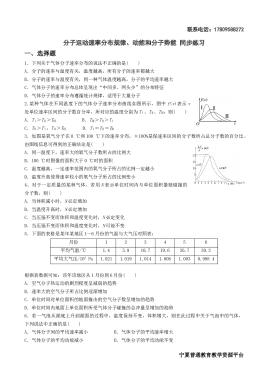 1.3 分子运动速率分布规律+ 1.4 分子动能和分子势能 同步练习-2023-2024学年高二下学期物理人教版(2019)选择性必修第三册