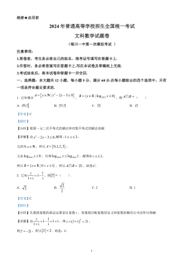 宁夏回族自治区银川一中2024届高三下学期第一次模拟考试数学(文)试题(解析版)