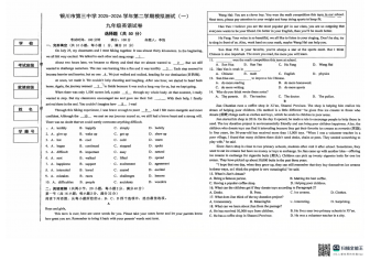 银川三中初三第二学期一模英语试卷