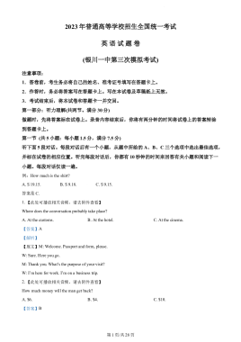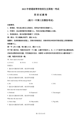 精品解析:2023届宁夏银川一中高三下学期第三次模拟英语试题(含听力)