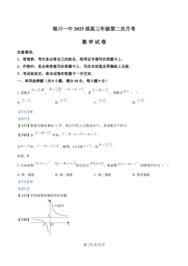 宁夏回族自治区银川一中2024-2025学年高三第二次月考数学试卷(原卷版)