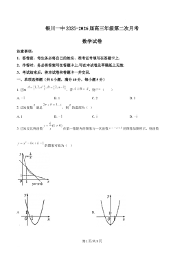 宁夏银川一中2025-2026学年高三上学期第二次月考数学试卷(原卷版)