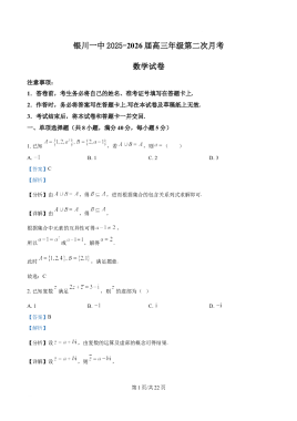 宁夏银川一中2025-2026学年高三上学期第二次月考数学试卷(解析版)