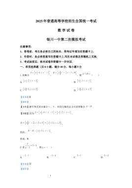 2025年银川一中高三第二次模拟数学试卷(解析版)