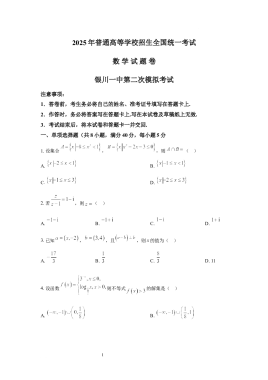 2025年银川一中高三第二次模拟数学试卷(原卷版)
