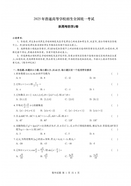 2025年普通高等学校招生全国统一考试新高考数学一卷