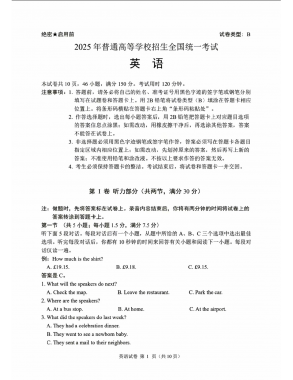 2025年普通高等学校招生全国统一考试(新Ⅱ卷)