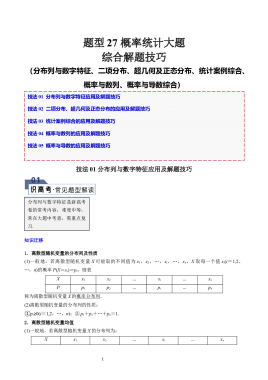 题型27 5类概率统计大题综合解题技巧(分布列与数字特征、二项分布、超几何及正态分布、统计案例综合、概率与数列、概率与导数综合)(原卷版)
