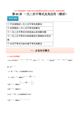 第05讲 一元二次不等式及其应用(精讲)-2025年高考数学一轮复习讲义及高频考点归纳与方法总结(新高考通用)原卷版