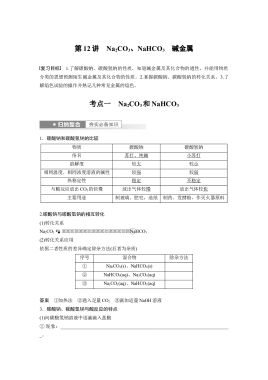 第3章 第12讲 Na2CO3、NaHCO3 碱金属---2023年高考化学一轮复习(新高考)