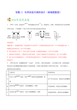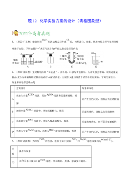 专题12 化学实验方案的设计(表格图象型)——2020-2022年高考真题化学分项汇编(新高考专用)(原卷版)