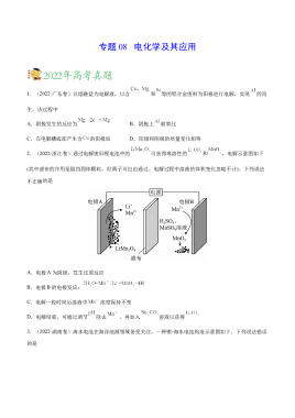专题08 电化学及其应用——2020-2022年高考真题化学分项汇编(新高考专用)(原卷版)