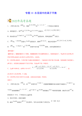 专题10 水溶液中的离子平衡——2020-2022年高考真题化学分项汇编(新高考专用)(原卷版)