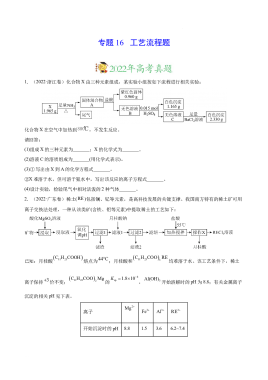专题16 工艺流程题——2020-2022年高考真题化学分项汇编(新高考专用)(原卷版)