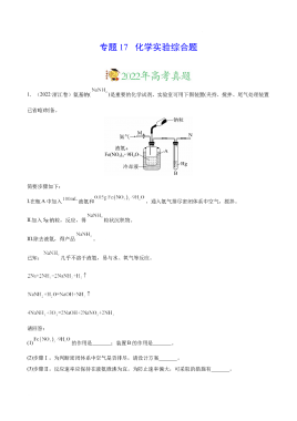 专题17 化学实验综合题——2020-2022年高考真题化学分项汇编(新高考专用)(原卷版)